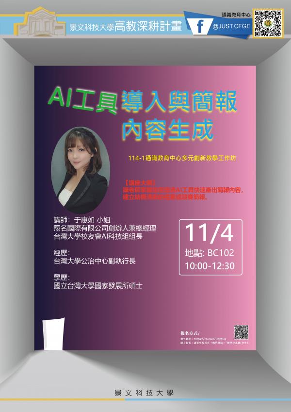 114-1多元創新教學工作坊:「AI工具導入與簡報內容生成」